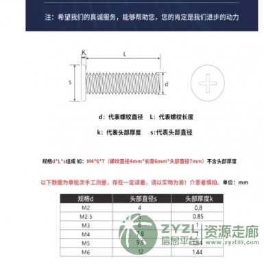 需求:M 2的平头螺丝