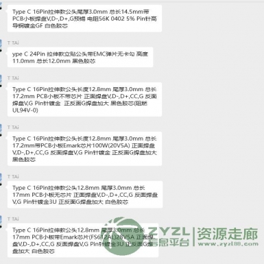 采购几款Type C 16Pin拉伸款公头连接器