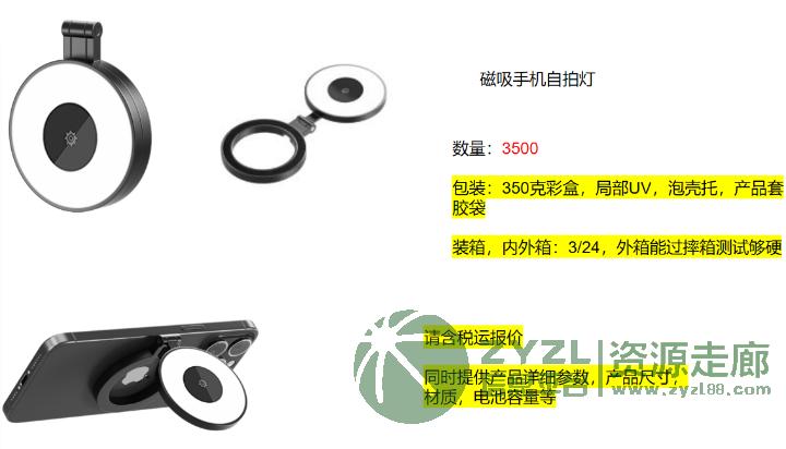 采购图中暖手宝和磁吸补光灯