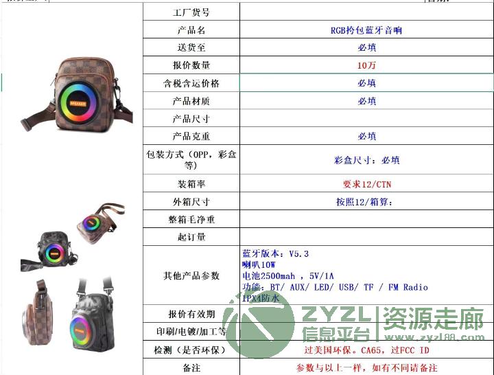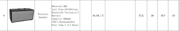采购这些蓝牙音响外壳、PCBA、喇叭、配件、辅料、彩盒!数量、要求如图!