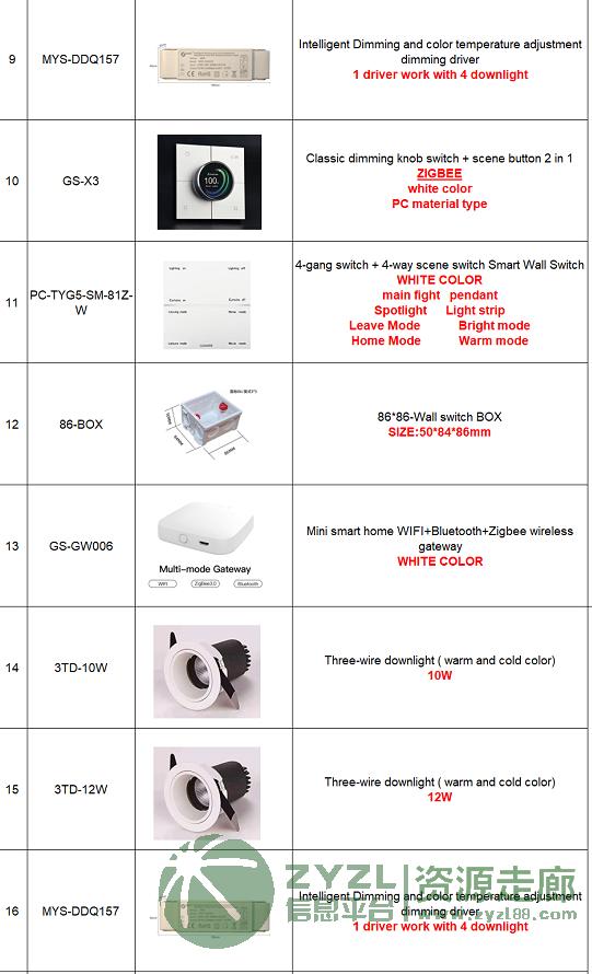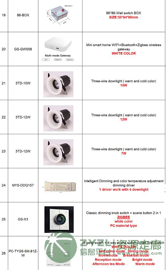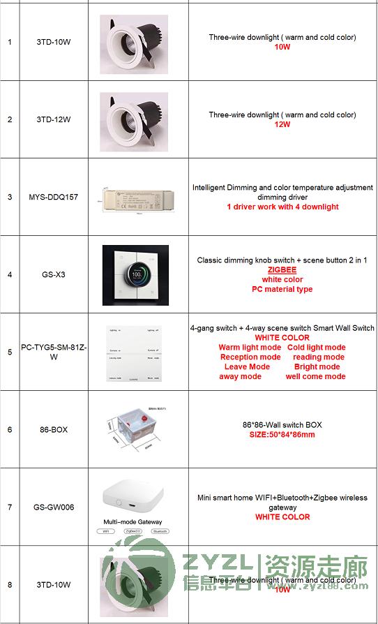 为客人采购清单里的这些:智能家居中控系统、智能门锁中控、智能灯光中控、智能旋钮(控制灯光和音乐)、智能插座、LED筒灯、网络摄像头