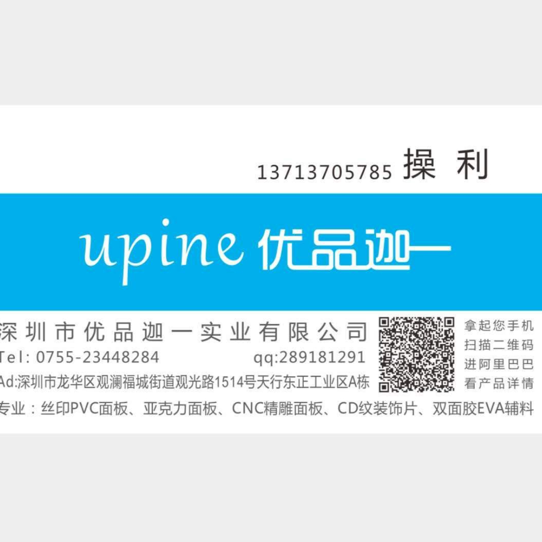 深圳市优品迦一实业有限公司本司主要生产丝印PVC铭牌,按键面板,亚克力镜片,EVA辅料,不干胶标准