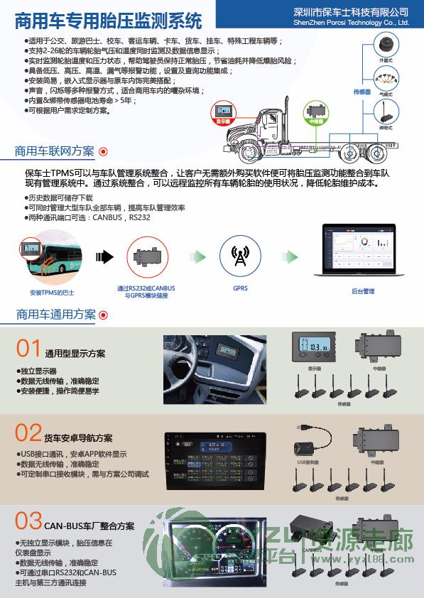 深圳保车士主营公交客车货车等各类商用车&工程车专用胎压监测产品,压力0-14Bar&46轮以内各类车型适用,支持个性化TPMS需求定制。公司通过ISO9001&TS16949等体系认证,产品符合中国GB26149-2018,美国FCC,欧盟CE等产品标准!欢迎咨询联系:186 7558 6178 苏生 (微信同号)谢谢![握手]