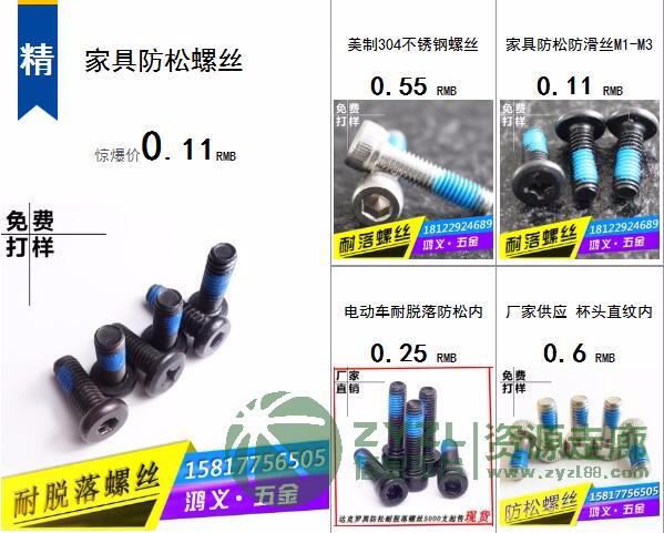 防松螺丝螺丝定做螺丝点胶耐落螺丝家具螺丝电子螺丝