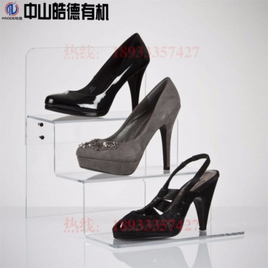 有机玻璃鞋架鞋托商场展示用品支架亚克力托架收纳架 品名:亚克力鞋托 型号:HDSP2 尺寸:205*270*410MM 材料:进口高质亚