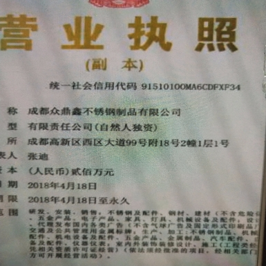 四川省-成都市 成都众鼎鑫不锈钢制品有限公司