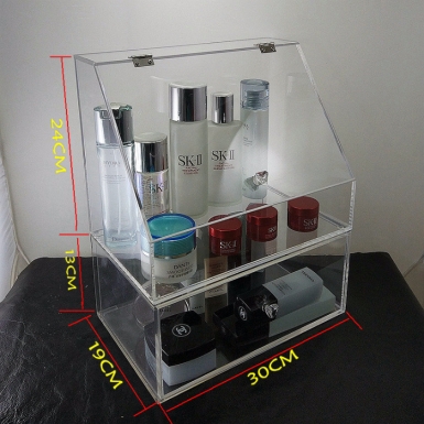 亚克力防尘罩收纳箱翻盖透明亚克力化妆品收纳盒 基本参数 品牌: 莫繁 型号:HDZJ3 产品:收纳盒 颜色:透明 材质:亚克力+金属合页
