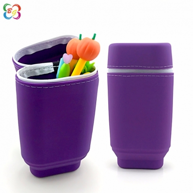 硅胶制品厂家现模直供折叠伸缩硅胶笔筒-大容量翻盖硅胶笔袋