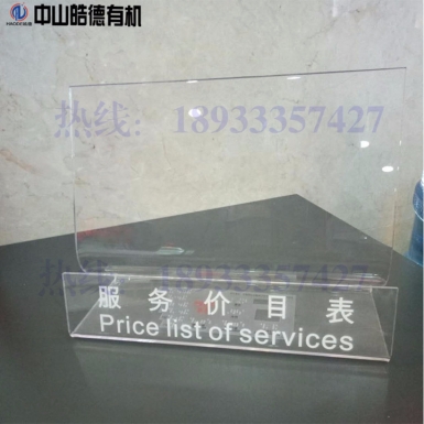 亚克力宣传广告牌水晶台卡亚克力标牌意见薄台签 基本参数 品牌: 莫繁 型号:HDBG4 产品:台卡 材质:透明亚克力 包装说明:产品包装标准为内部泡沫
