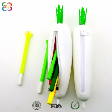 产品名称:韩版简约小清新笔袋 优势特点:精选优质环保硅胶,韩版简约小清新笔袋独特创意设计,仿真萝卜造型,制作精美,工艺考究,质量上乘,品相完好。 功能用途: