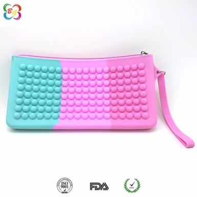 名称:女士混色手腕包 特点:此款女士混色手腕包以优质环保硅胶为原料材,拉链式顺畅开口,质量上乘,外观双色或三色乃至多色,光滑柔顺,且韧性、弹性极好的,不轻易因