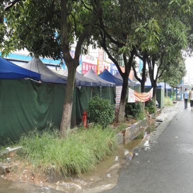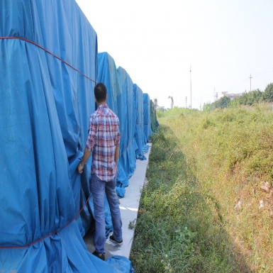 晒谷场上的彩条布也有大翻身的时候。彩条布就是平常我们所见的那种蓝白相间的编织布。彩条布价格便宜,而且下雨天也会渗水,防水性能不好。因为彩条布是采用缝纫机缝合的,