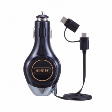 伸缩线车充二合一安卓苹果车载手机充电器