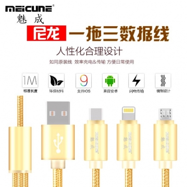 尼龙编织一拖三数据线