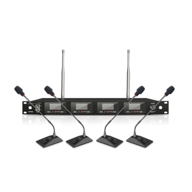 WCT804高端会议系统通道数:四通道面板显示:镜面OLED屏可同时显示发射器编号,RF/AF信号强度,SQ设置,发