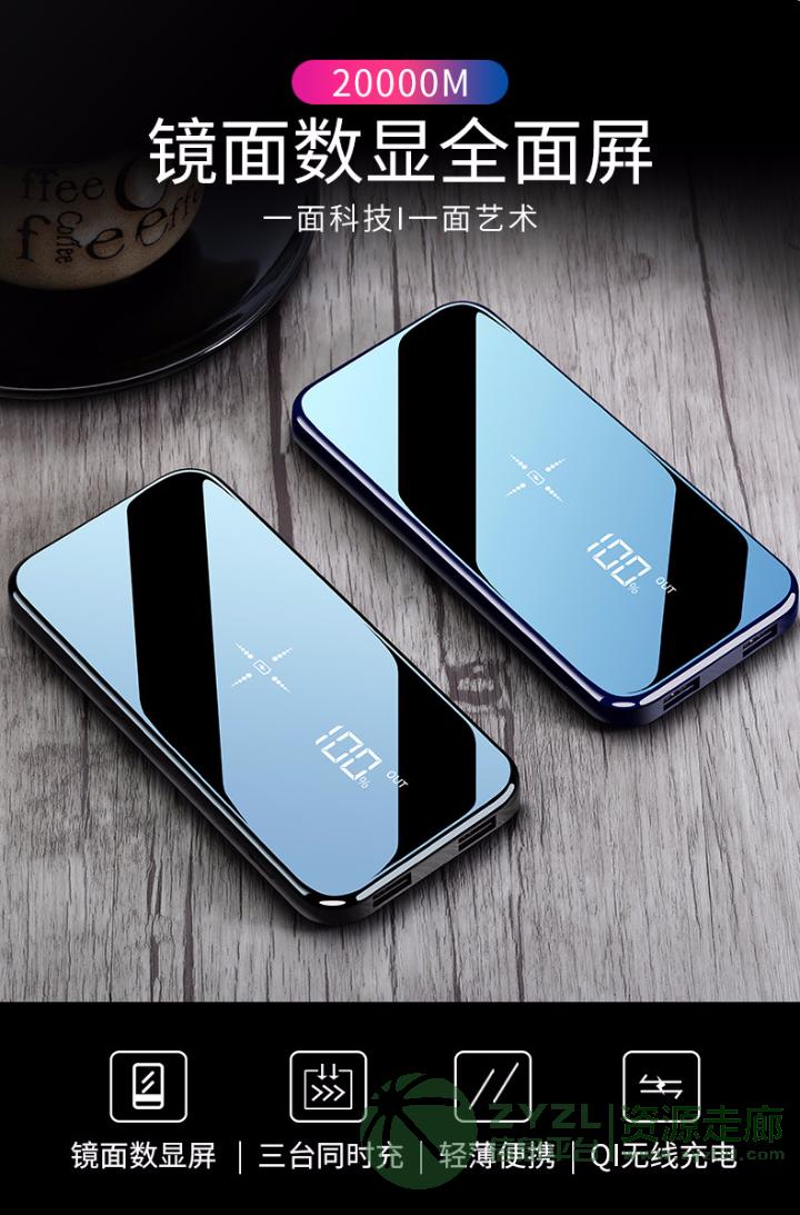 超簿高颜值钢琴面8000mah无线充移动电源