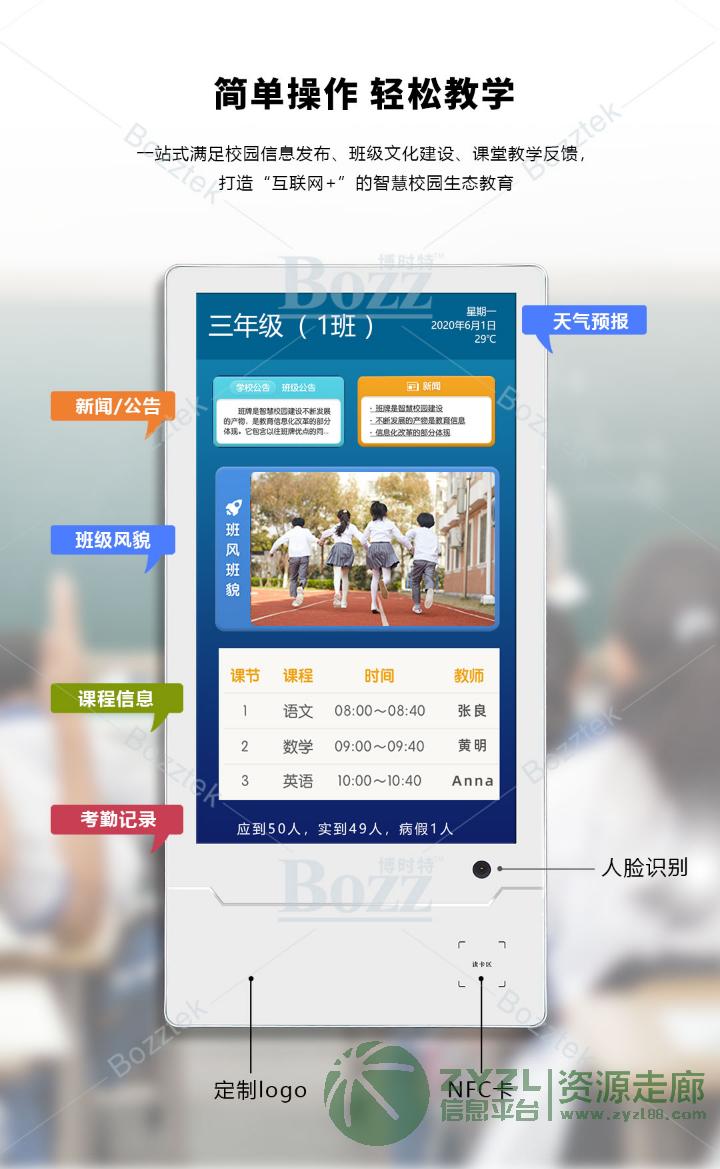 适用于企业、学校、培训机构、医院、行政单位等班牌以及门禁场景。