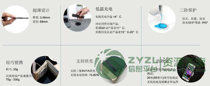 防跌落功能,表面使用防滑硅胶设计测试:20米(65)英尺高空坠地后无线充电发射器正常运作。