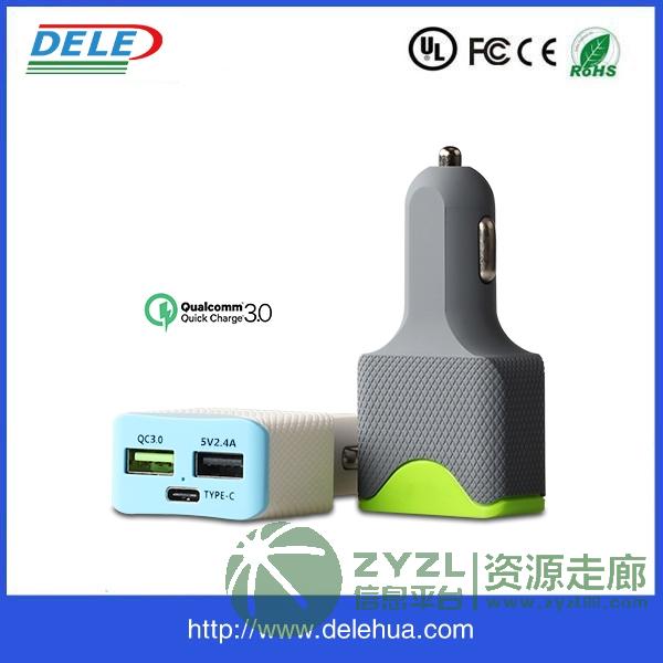 三口输出,带TYPEC口,QC3.0+华为FCP快充功能,表面格子纹路设计,手感舒适,防刮伤,