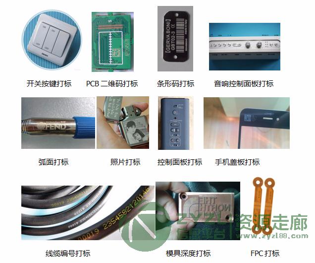 光纤激光打标机主要用于各种金属和非金属打标,金属如铝、铁、铜等金属以及各种合金产品;非金属如PVC等各种塑胶以及喷油、喷漆、电镀等各种加工产品。打标内容涵盖二维码、条形码、LOGO文字图案等多种信息。