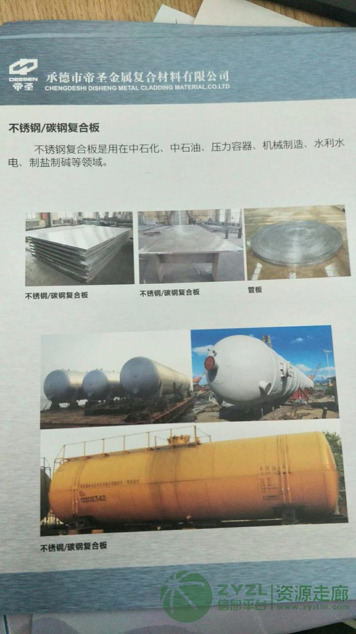 无锡帝圣金属材料有限公司是生产金属复合材料的专业厂家,主要有 爆炸复合材料 爆炸复合材料运用广泛,公司有先进的爆炸焊接技术,生产 不锈钢 铝 铜 钛 镍 哈氏合金 为合金的复层 以及 低碳合金 低合金钢 锅炉钢 船用钢 等为基层的复合板材 带 棒 管 等十大类的金属复合材料 需要的联系我详谈 电话微信同号18624937286