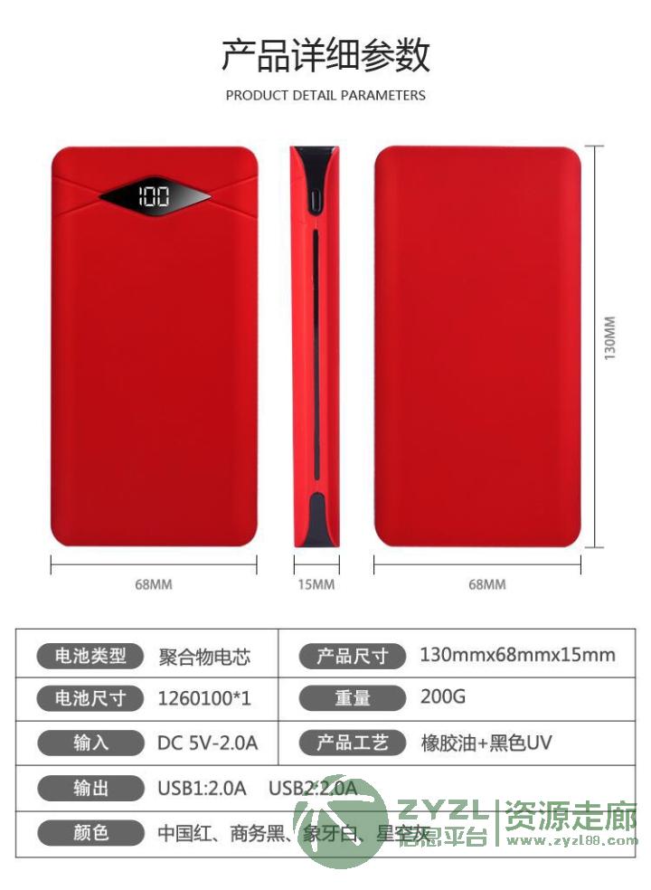 超薄聚合物,独家私模,内置电芯:6060100*2,2A进出,手感漆材质,中框UV