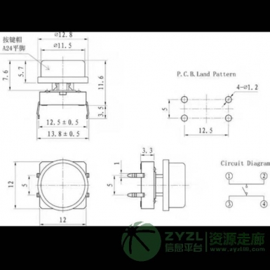采购四脚直插按键开关,H=10.5,.12*12