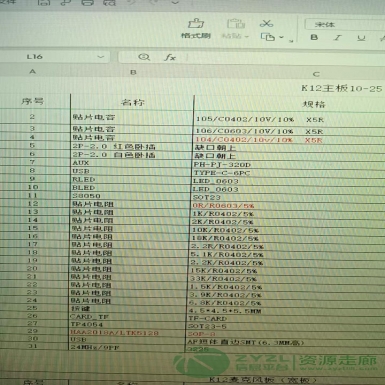 BOM图表中的电阻,电容,USB。灯珠等等所有元器件都要找供应商