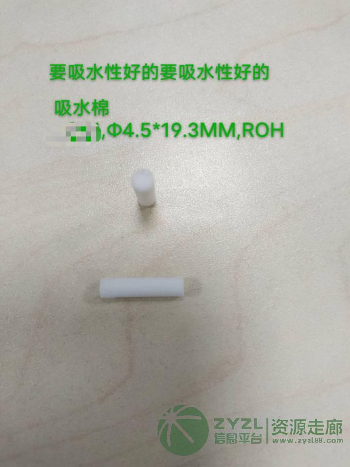 要求看图,吸水棉规格Φ4.5*19.3MM,ROH,数量20K每月,要验工厂
