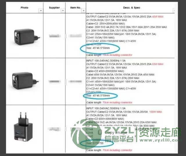 采购图中的几款充电器