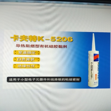 产品特点:K-5206(导热阻燃型有机硅胶黏剂)是一种单组份室温固化粘合剂,白色膏状,绝缘性优、粘结性好。