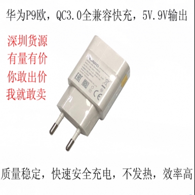 QC3.0快速充电器,输出5V3A,9V2A,支持华为,oppo,vivo,小米等手机充电使用。有过3C认证5V2V.1A。可提供非