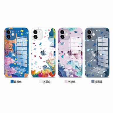 苹果渐变手机壳直边玻璃 适用iphone12保护套11pro