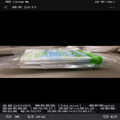 KN95拥有美国(fda.eua)、俄罗斯gost俄语系国家(除乌克兰)西班牙ce等认证,全新箱规包装每天50万,先款